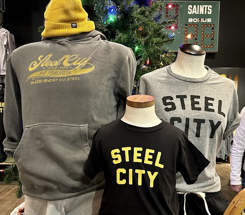5 /5 Dustin Barrett: Cute shop! The clothes are super comfy and full of Pittsburgh pride. Witty shirts will have you laughing the entire time you’re there. The young lady that was helping my wife and I was very friendly and accommodating! Highly recommend!